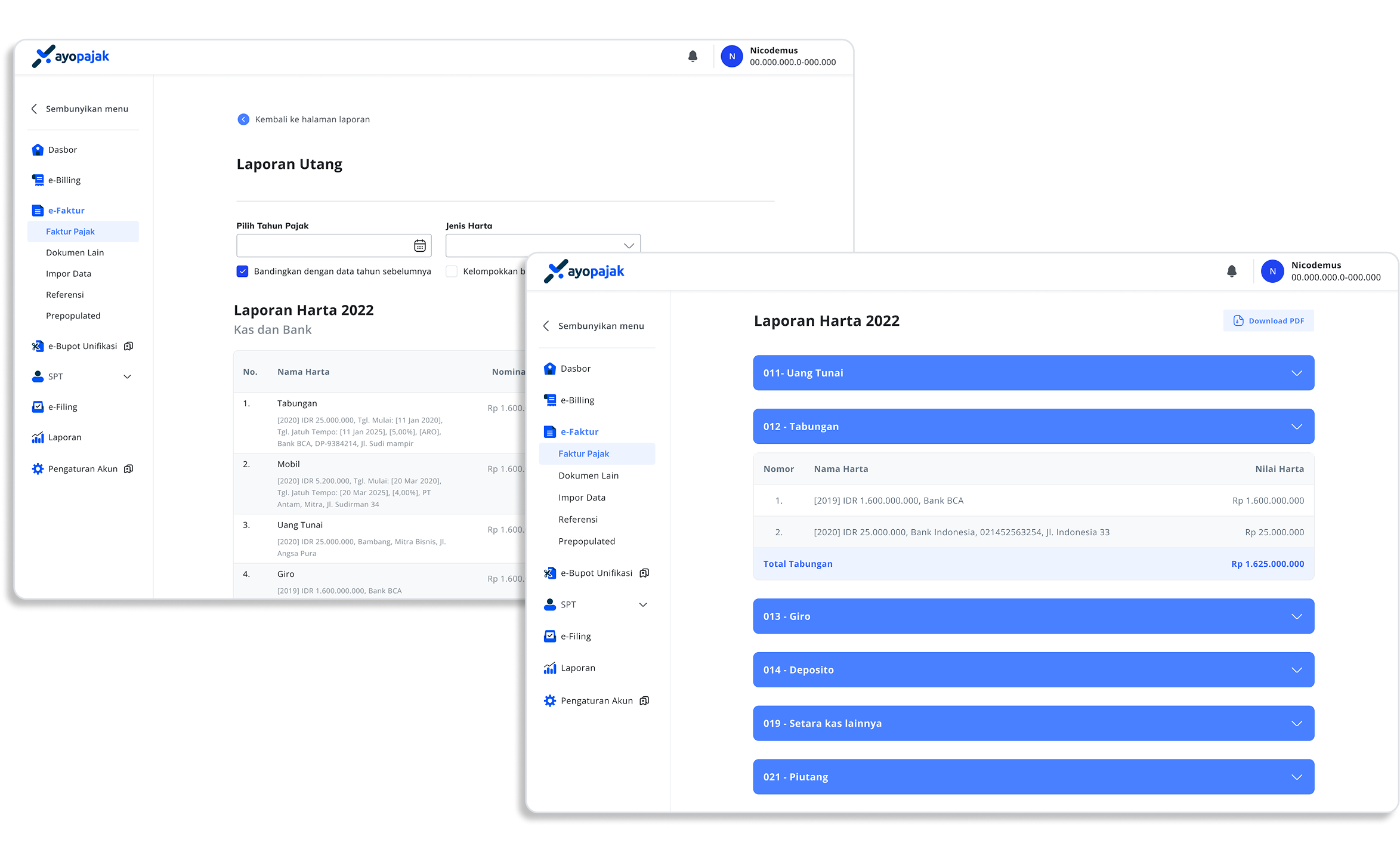 Dapatkan ringkasan menyeluruh mengenai aset, kewajiban, dan pergerakan keuangan. Fitur ini memberikan gambaran jelas tentang kesehatan keuangan Anda, membantu evaluasi dan pengambilan keputusan finansial.